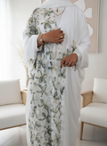 The Layali Abaya – White Floral /Green